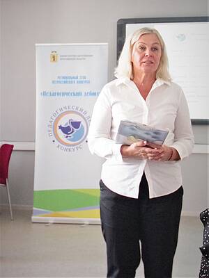 С приветствием к участникам семинара обратилась Астафьева Алина Сергеевна, председатель жюри регионального этапа конкурса, директор муниципального общеобразовательного учреждения «Средняя школа № 18», г. Ярославль, победитель областного этапа Всероссийского конкурса «Учитель года - 2000», Почетный работник общего образования Российской Федерации, федеральный эксперт Всероссийского конкурса «Педагогический дебют».