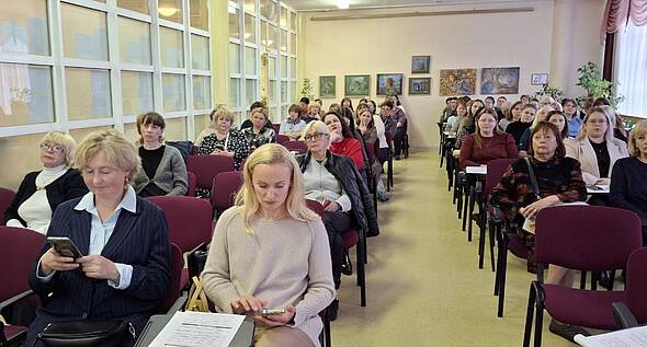 Для учителей начальных классов, преподавателей курса «Основы религиозных культур и светской этики» состоялся мастер-класс с руководителем сектора Основ православной культуры Синодального отдела религиозного образования и катехизации, лектором учебно-методического центра проекта «Клевер Лаборатория» Татьяной Владимировной Поликарповой. Ее выступление было посвящено теме формирования личности через уроки православной культуры и светской этики. Участники познакомились с практическими примерами ярких наработок в преподавании Православной культуры и светской этики и методиками преподавания, направленными на формирование нравственных ориентиров и личностных качеств у детей и подростков.