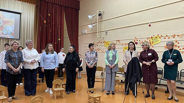 Жаворонкова Лилия Викторовна, директор ГОУ ЯО «Ярославская школа-интернат № 7» и педагогический коллектив представили систему работы школы полного дня, организовали посещение занятий, провели экскурсию по школе. Завершение встречи стал спектакль театра жестовой песни (объединение дополнительного образования детей) как результат работы команды специалистов по работе с детьми с ОВЗ. Спектакль никого не оставил равнодушным!
