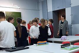 Учитель английского языка школы №29 Наталья Георгиевна Горышева пригласила коллег на открытый урок в 5 классе, на котором учителя могли наблюдать практическую реализацию мультисенсорного подхода.