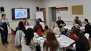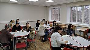 На первом аудиторном занятии курса слушатели были проинформированы о возможности использования чат-бота «Помощник Рособрнадзора» по вопросам снижения бюрократической нагрузки на педагогов, получили куар-коды доступа к чат-боту.