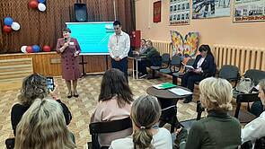 После обеда и активного обсуждения утренних занятий работа продолжилась в «Центре образования Борисоглебская школа № 1». Участников встретила заместитель директора Киселева И.В.
